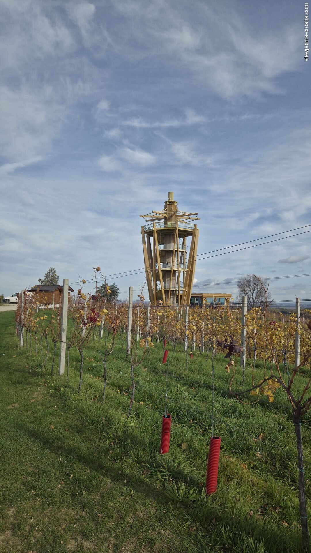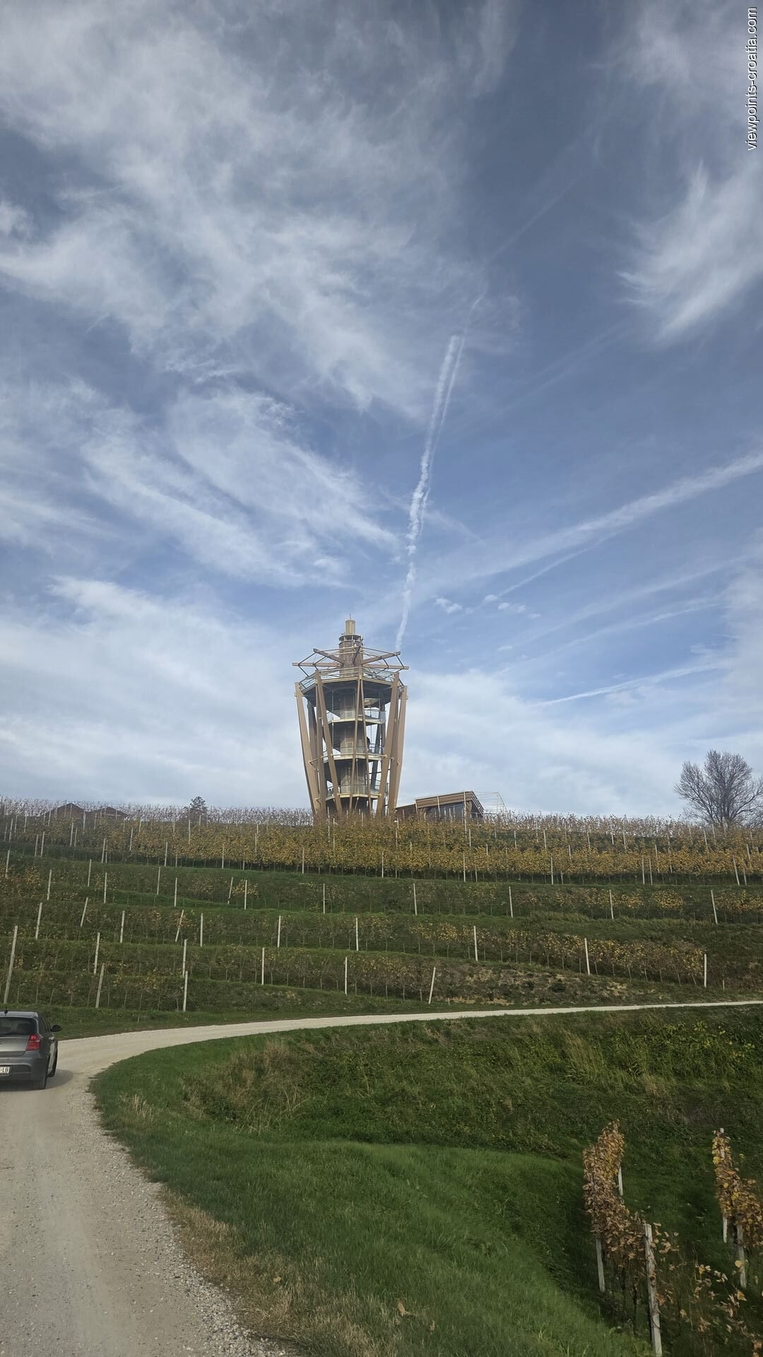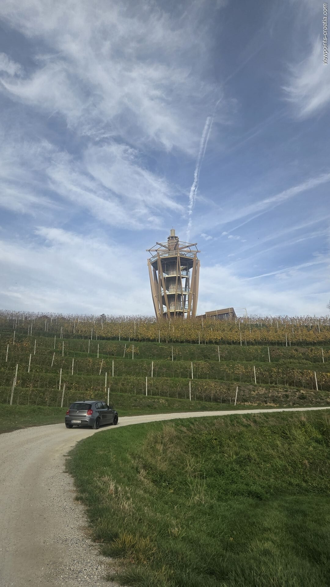 The road is in good condition, winding through charming Međimurje villages. The last 500 meters are on a gravel road that narrows slightly. From the parking area, a short walking path through vineyards leads you up to the tower — a perfect chance to breathe in the fresh Međimurje air and soak up the local atmosphere. Along the way, you can stop at small stalls selling local wine, honey, and homemade products.