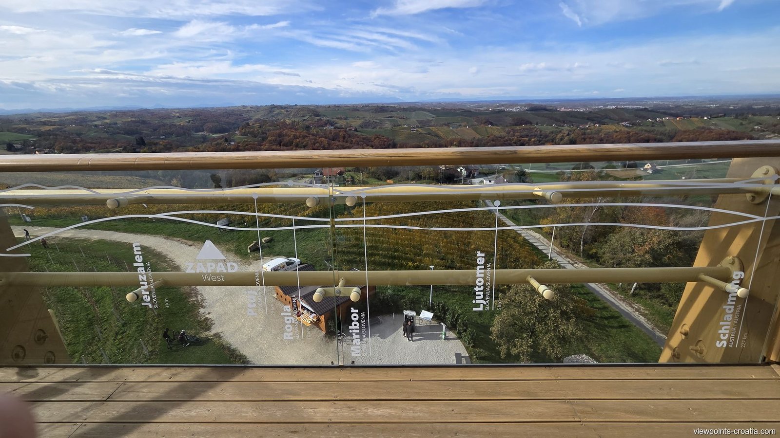 - A panorama of five countries – a unique sight in this part of Europe! The glass railings around the tower are marked with names and directions, so you can easily identify what you’re looking at. As the local saying goes, “z njega vidiš na se strane” – “from here, you can see in all directions.”