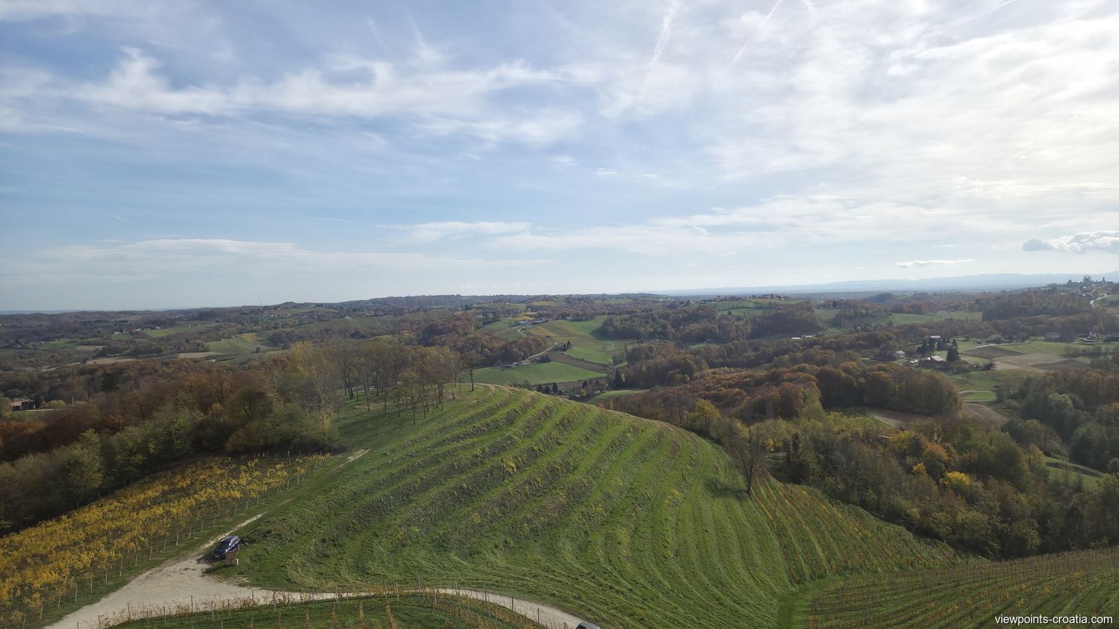 If you’re coming from Čakovec, Varaždin, or northern Croatia, follow the road signs for Štrigova and Robadje. After Sveti Urban, you’ll see signs pointing directly to the viewpoint. Just when you start wondering if you’ve taken a wrong turn, you’ll spot the wooden lookout tower in the distance. Or simply follow the crowd — it’s rarely empty here, especially on weekends.